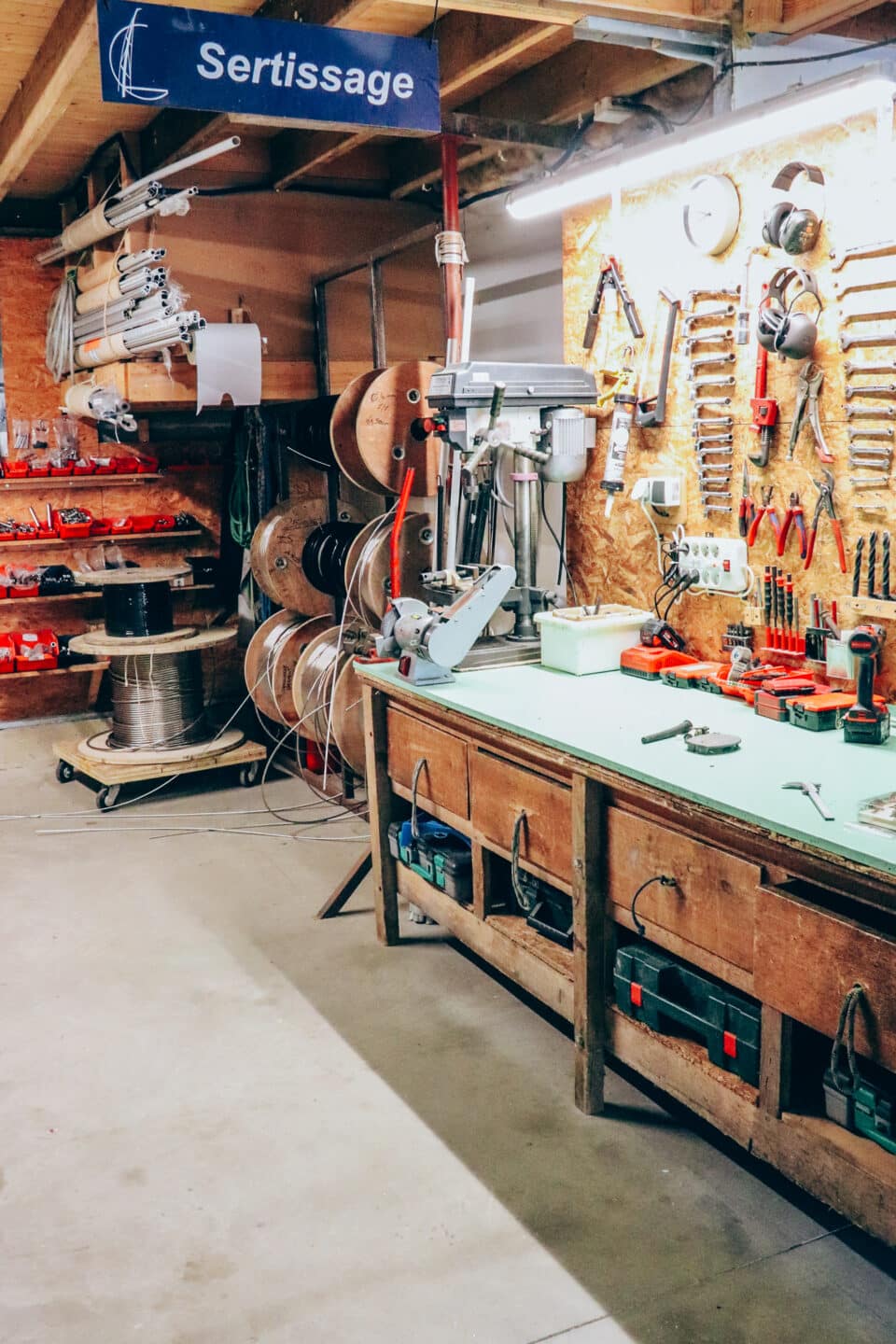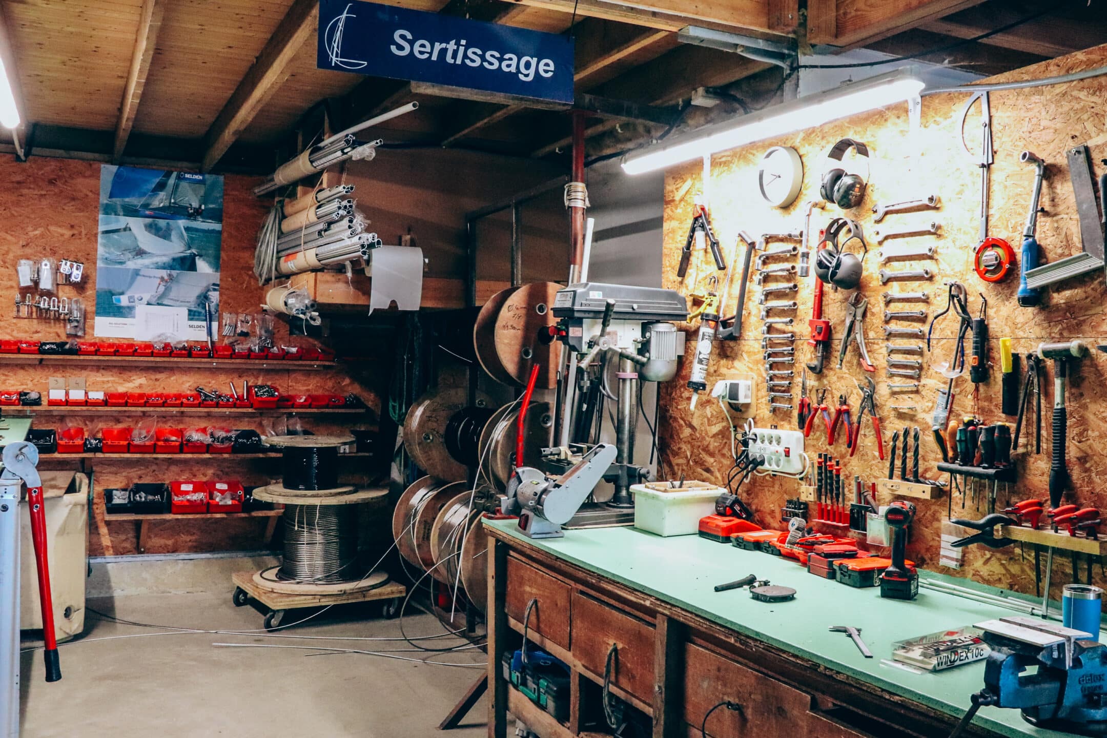 Notre équipe travaille au quotidien à l’atelier, situé zone du Moros, dans un espace de 200 m² permettant de prendre en charge tous types de mâts et de travaux.